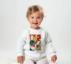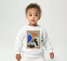 Our baby sweatshirts are made from 85% organic cotton and 15% recycled polyester.