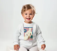 Our baby sweatshirts are made from 85% organic cotton and 15% recycled polyester.