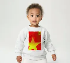 Our baby sweatshirts are made from 85% organic cotton and 15% recycled polyester.