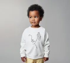 Our baby sweatshirts are made from 85% organic cotton and 15% recycled polyester.