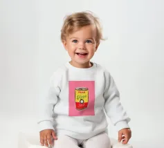 Our baby sweatshirts are made from 85% organic cotton and 15% recycled polyester.