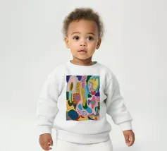 Our baby sweatshirts are made from 85% organic cotton and 15% recycled polyester.