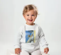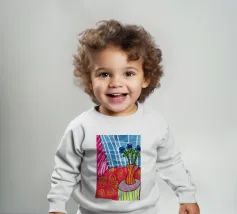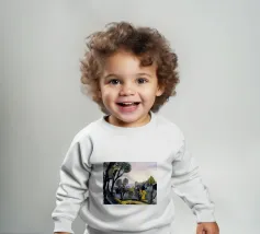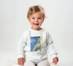 Our baby sweatshirts are made from 85% organic cotton and 15% recycled polyester.
