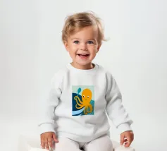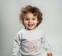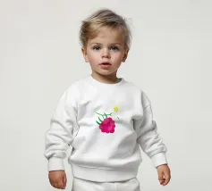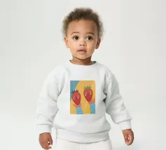 Our baby sweatshirts are made from 85% organic cotton and 15% recycled polyester.