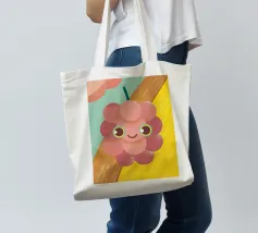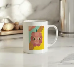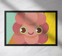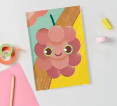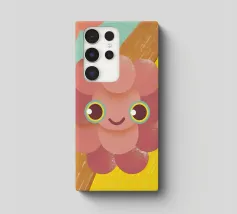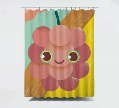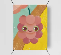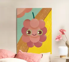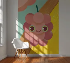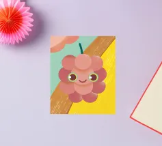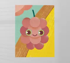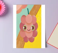 Cheerful illustration featuring a grape with a cute face, radiating a spirit of deliciousness and cheerfulness.