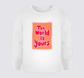 "The world is yours!" - An adventurous summer motif in bright shades of pink, red and orange. This typographic design inspires travelling and exploration, while the bold font embodies freedom and possibility.