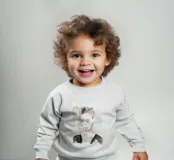 Our baby sweatshirts are made from 85% organic cotton and 15% recycled polyester.