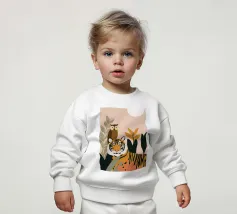Our baby sweatshirts are made from 85% organic cotton and 15% recycled polyester.