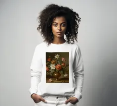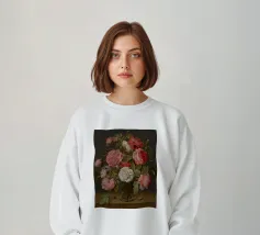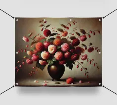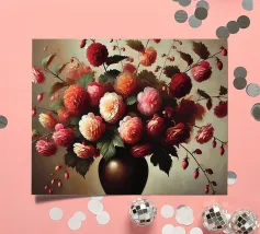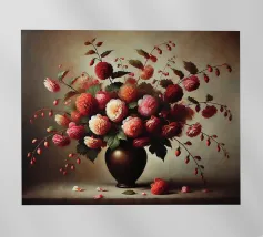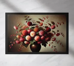 A refined Victorian-inspired art print depicting a lush bouquet of flowers arranged in an ornate vase, painted in classic oil style with rich details and timeless elegance — perfect for adding vintage charm and sophistication to any interior.