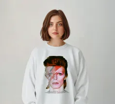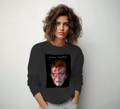 David Bowie meets pop culture remix: this hyper-realistic portrait shows the music legend in a Ziggy Stardust look - with iconic flash and pink bubblegum bubble. A provocative statement between rebellion, glam and a wink. For all fans of Bowie, pop art and unique wall art. Ideal for living rooms, music rooms or gallery spaces - bold, bold, bold.