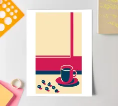 Enjoy the fragrant aroma and rich taste of coffee. Design featuring coffee beans and a mouth-watering cup of coffee.