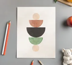 Add a touch of minimalistic charm to your space with this vibrant abstract modern mid century art print, featuring a mesmerizing blend of geometric, free-flowing watercolor shapes against a soft, creamy neutral background. With its warm Scandinavian-Japandi feel, it's not just art—it's a vibe.