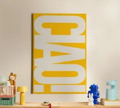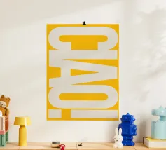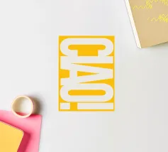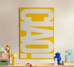 "CIAO" - a greeting like an attitude to life. This poster features the Italian greeting as a vertical typography statement on bright yellow. The clear font and strong format make it a modern eye-catcher. Ideal for corridors, offices, kitchens or as part of the "Bold Greetings" series. Friendly, clear, stylish - and 100 % positive.