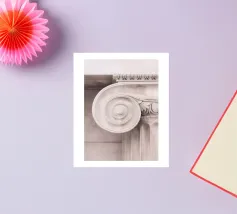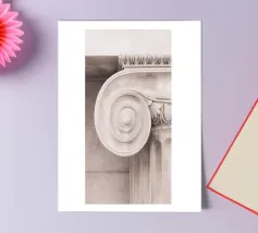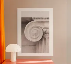 This elegant motif shows a detailed view of an antique column in soft cream and beige tones. The classic shapes and embellishments reflect the beauty of antique architecture and bring a timeless aesthetic to any room. Ideal for lovers of art and design who want to add a touch of classic style to their home. This motif fits perfectly on wall murals, cushions, mugs and more, adding a sophisticated, architectural charm to your rooms.