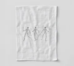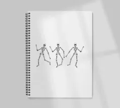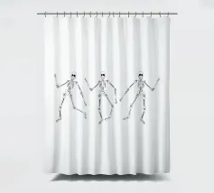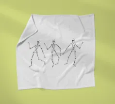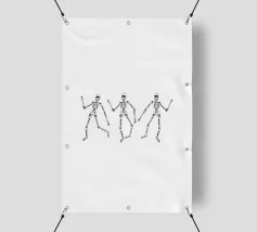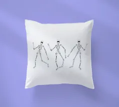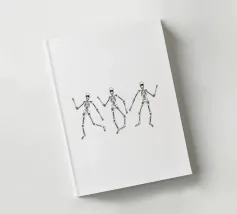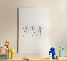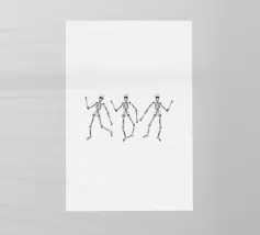 3 skeletons dancing in black and white.