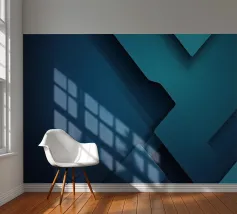 This abstract design features layered blue geometric shapes against a deep blue backdrop, ideal for use as a creative wallpaper or desktop design that enhances visual aesthetics.