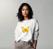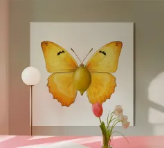 This whimsical design features a unique lemon butterfly, where the body is a realistic lemon and the wings are vibrant yellow. Set against a transparent background, this playful and fresh pattern captures the essence of summer. Perfect for those looking to add a fun, citrus-inspired touch to their space, whether for textiles, prints, or accessories. Its bright, cheerful design brings a pop of color and a quirky charm to any decor.