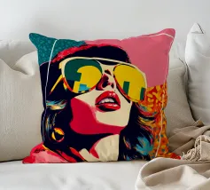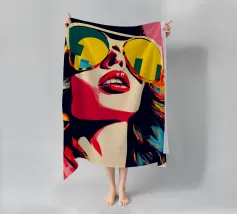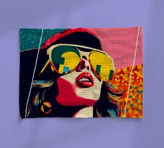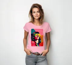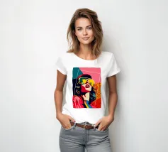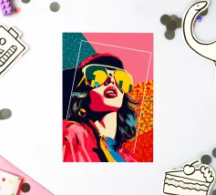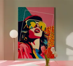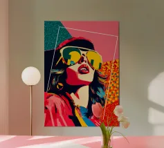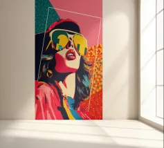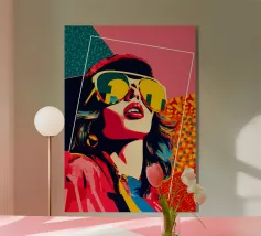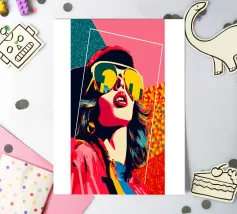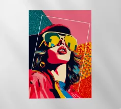 This painting is a statement for self-confidence and the joy of life. Thinking Outside The Box! A young woman with vibrant, multicolored hair styled in loose waves cascading down her shoulders. Her skin is sun-kissed and glowing, with a bright smile on her face. The overall vibe is playful and carefree, capturing the essence of a fun and sun-filled summer day.