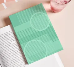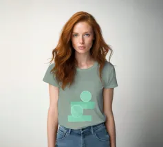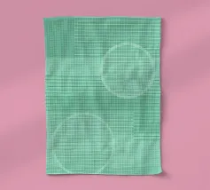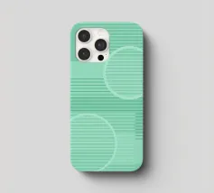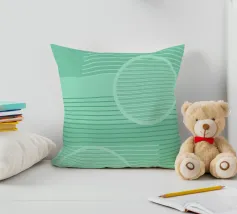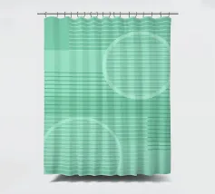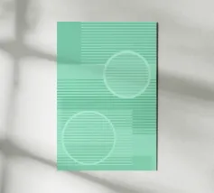 Stylish and minimalist abstract geometric design with circles, rectangles and thin stripes in sage green and mint green.