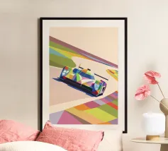Get an illustration of a colorful go-kart on the racetrack with a modern geometric style.