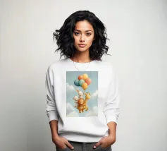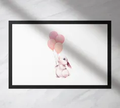 This adorable artwork features a cute bunny holding colorful balloons, perfect for adding a cheerful touch to your everyday items. Available on mugs, shirts, notebooks, phone cases, posters, and towels, this design brings joy and whimsy to a wide range of products, making it ideal for kids and those young at heart.