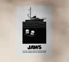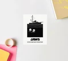 Jaws Print, Alternative Movie Poster, Minimalist Wall Art, Black & White, High Quality Prints, Bad Fish, Shark, Movie Fans Gift, Vector Art