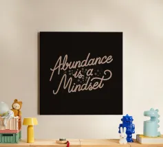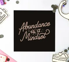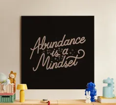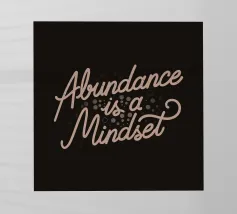 A lettering featuring lettering in pastel tone with a black background, adorned with the phrase "Abundance is a mindset". This design is a reminder that you have to maintain positivity on your life. It serves as a thoughtful gift for people who is always positive or for those who needs this as a reminder.