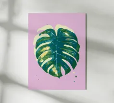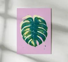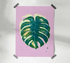 Bring more color to your life! Monstera leaf on pink background for all who love jungle plants and colors. Handmade illustration made with love and dedication.