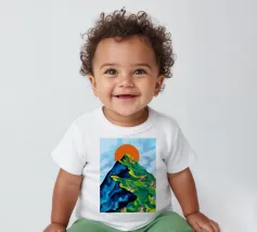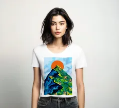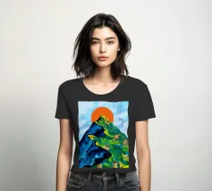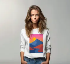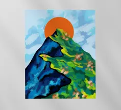 "Bright Horizon: Mountain Sunshine" captures the peaceful beauty of sunlit mountains against a radiant sky. This print brings the warmth and tranquility of nature into your space, offering a serene escape.