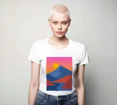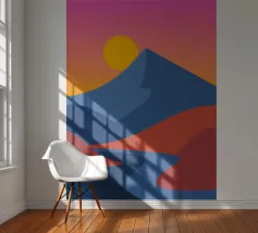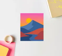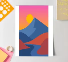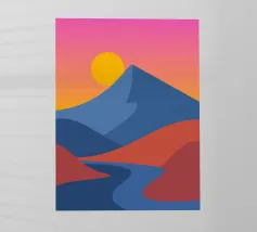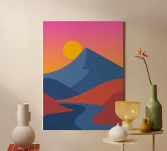 Layers of mountain silhouettes fade into the distance, softened by a smooth gradient sky that shifts gently from warm tones to cool hues—suggesting dawn, dusk, or a dreamlike in-between. The composition evokes depth, stillness, and subtle emotion, capturing the quiet majesty of mountains under changing light. Minimal yet immersive, this piece brings a sense of calm and atmosphere to any space.
