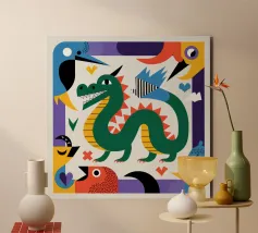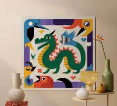 Depicts a legendary snake through intricate details and vivid colors. This painting evokes a sense of mystery and adventure, inviting viewers to delve into the mythical world of serpents.