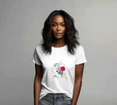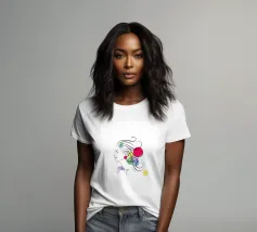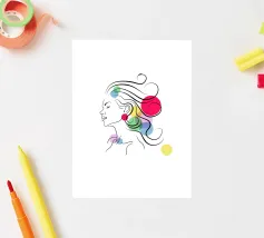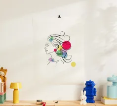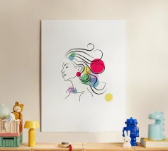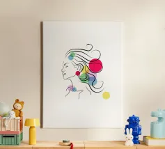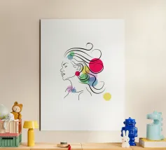 A striking minimalist portrait of a woman’s profile, where delicate black lines meet vibrant, abstract circles. This composition evokes introspection and emotion, merging human expression with graphic modernism — a bold addition to any space.