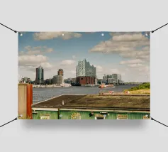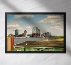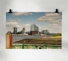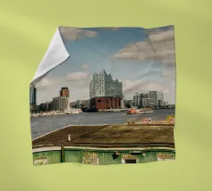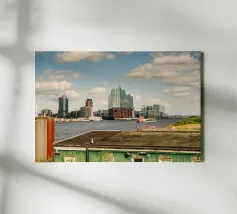 A view of the famous Elbphilharmonie concert hall in Hamburg, captured on a sunny day with a light breeze over the Elbe. The striking architecture and the passing ferries lend the picture a lively, maritime atmosphere - a piece of modern Hanseatic city in the middle of everyday life.