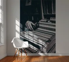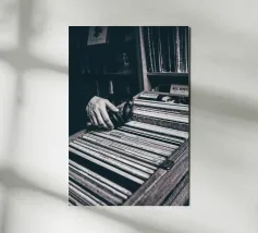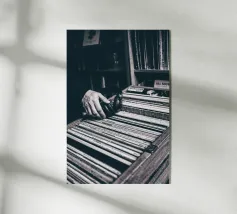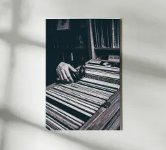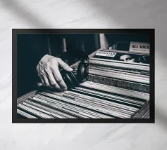 This black and white poster captures the magic of analogue music: a reach into the record box, headphones in hand - a quiet moment between nostalgia and sound. For music lovers, retro romantics and interiors with character. Perfect for the living room, studio or vinyl corner. Authentic. Quiet. Timeless. A must-have for anyone who doesn't just listen to music, but feels it.
