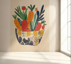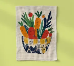 A stylised tribute to the wonders of the vegetable garden. With its warm hues and bold textures, this graphic illustration sublimates the shapes and colours of vegetables with a dazzling modernity.
