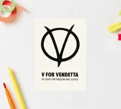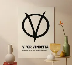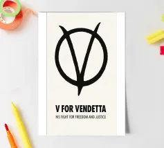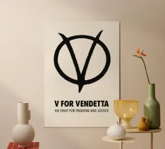 V For Vendetta Print, Alternative Movie Poster, Minimal Wall Art, Black & White, V Signature, Freedom, Justice, Movie Fans Gift