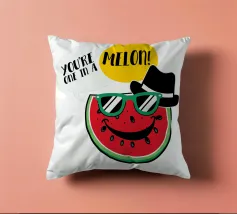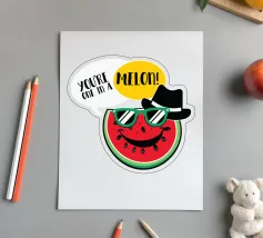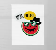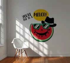 A cool watermelon character wears sunglasses and a hat while delivering a pun with the text "You're one in a melon!" in speech bubbles.