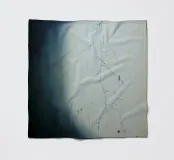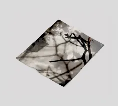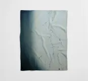 Intricate branching patterns fill this abstract artwork, set against a gradient blue to white background. The delicate lines create a serene and minimalist effect, inviting contemplation.