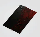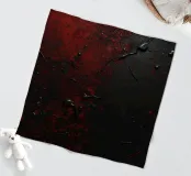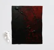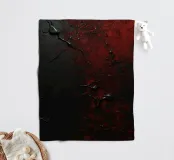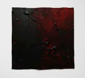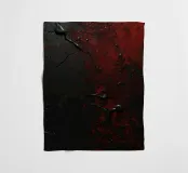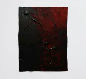 Bold black and red paint splashes cover a dark surface, creating an abstract design. The contrasting colors emphasize texture and depth, enhancing artistic expression.