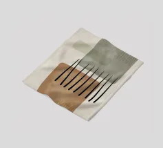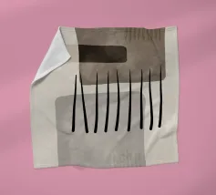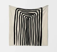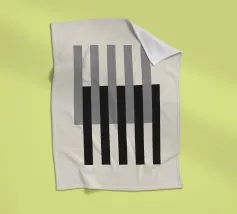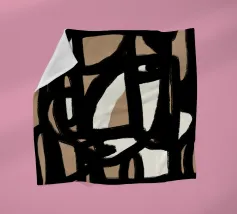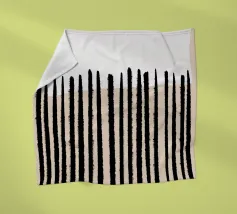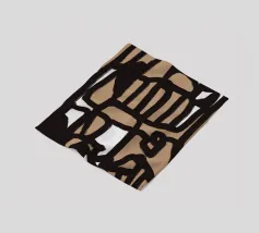 Modern abstract design featuring evenly spaced vertical black lines extending over a solid brown rectangular area, creating a striking contrast and dynamic visual effect.