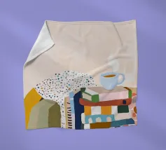 A simple, cozy still life of a cup of hot coffee resting on a stack of old books. The play of light and shadow creates a warm, intellectual, and comforting atmosphere, perfect for any book lover.