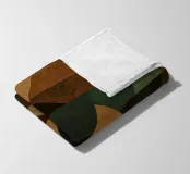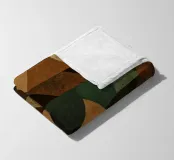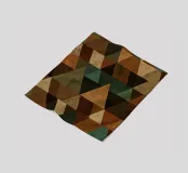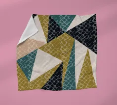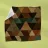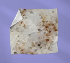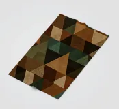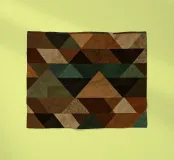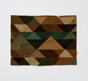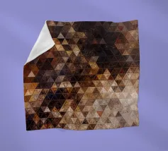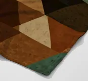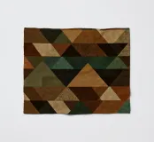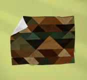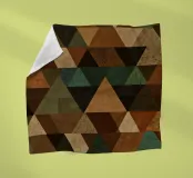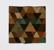 This artwork features an intricate arrangement of triangles in varying shades of brown, green, and cream, creating a visually striking and textured pattern.