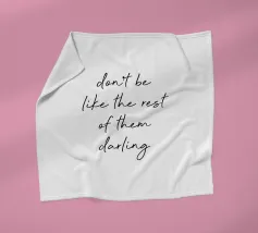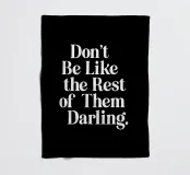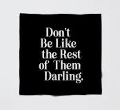 Elevate your space with this striking Coco Chanel typography art print. The iconic phrase "Don't Be Like the Rest of Them Darling" is elegantly rendered in vintage white serif lettering, creating a bold contrast against a solid black background. This timeless design captures Chanel's spirit of individuality and style, perfect for adding a touch of sophistication to any room. Ideal for fashion enthusiasts, empowered individuals, or anyone who appreciates classic elegance with a modern twist. Let this print inspire you to embrace your uniqueness and stand out from the crowd.