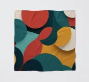 This artwork showcases an array of vibrant, overlapping circular forms in various colors, creating a lively and engaging abstract design that captivates the eye.