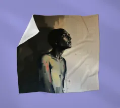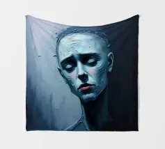 A person with short hair sits against a wall in a softly lit room, conveying deep emotion and introspection. The atmosphere feels heavy and contemplative, enhancing the mood.