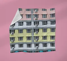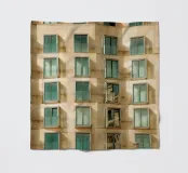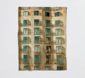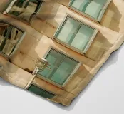 Urban Patterns in Berlin-Mitte: The modern building façade looks like a geometric pattern of glass and stone. Evenly arranged windows reflect the daylight, while the gentle waves in the building structure break up the strict rhythm. Subtle traces of time and weather lend the clear architecture a subtle liveliness - an interplay between order and organic change.
