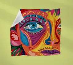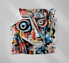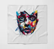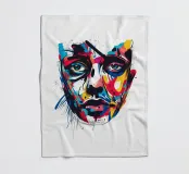 Vivid abstract illustration of a human face rendered with bold brushstrokes and vibrant splashes of red, blue, yellow, and black. Expressive details evoke emotion and creativity, blending modern art and realism.