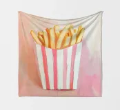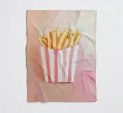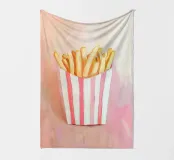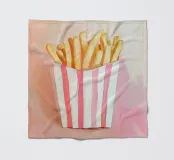 This charming illustration of French fries in a pastel striped box captures the nostalgic retro look of the popular snack. With soft brushstrokes and a harmonious colour palette, the vintage artwork conveys a playful food culture and transforms fast food into creative culinary art.