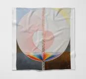 This captivating exhibition poster features a profound abstract artwork by Hilma af Klint, "The Tree of Knowledge, No. 5," characterized by its ethereal spirals, concentric circles, and delicate rainbow spectrum. The soft pastel shades of pink, yellow, blue, and brown blend seamlessly, creating a sense of spiritual depth and cosmic harmony. The poster advertises the "Hilma af Klint - Artist, researcher, medium" exhibition at the Museum of Modern Art, Stockholm, from 16 February 1977 to 26 May 1977. This high-quality digital poster (7000x5000 pixels, 300 dpi) beautifully captures the mystical a