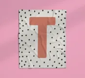 The playful design with the letter "T" in bright red on a black dot pattern is a stylish eye-catcher. Perfect for children's rooms, modern living spaces or as a gift idea with a personal touch. The clear typography combined with a Scandinavian-inspired pattern adds a charming accent to any room. Ideal for combining with other letters from the series